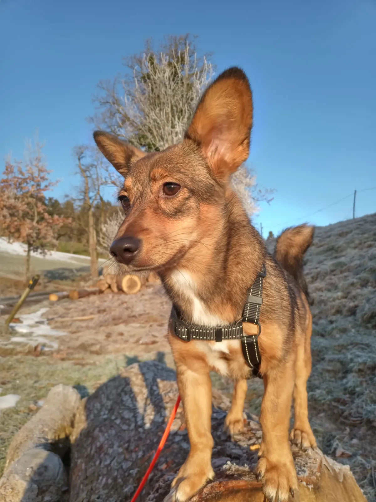An Leine und Geschirr hat sich Buffy schon ein wenig gewohnt. Nichts desto trotz braucht es Zeit und Geduld die kleine Maus an das ganze Hunde 1x1 heranzuführen.