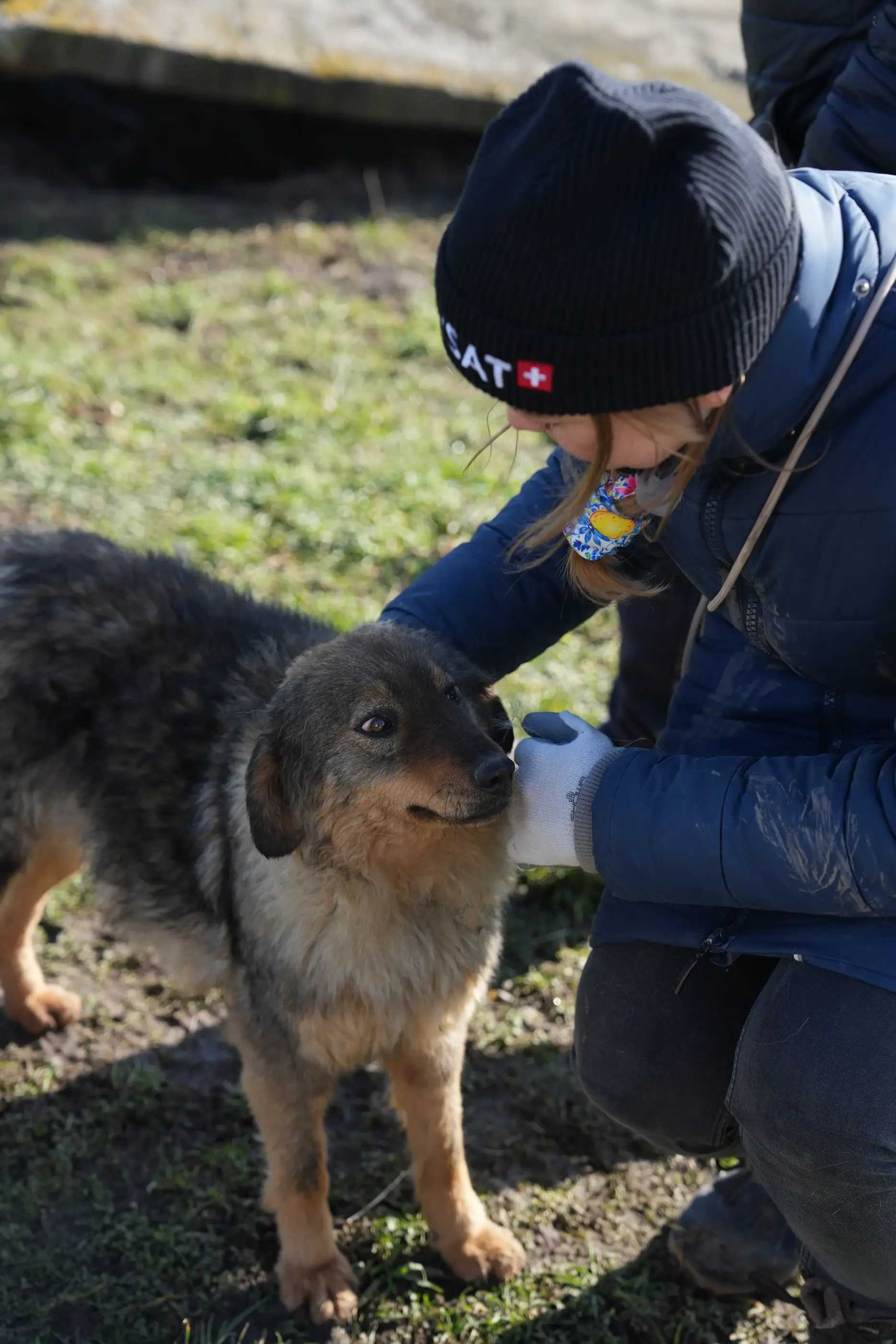 Sie nahm die drei Mädchen mit, um sie vor dem Erfrieren zu retten. Leider konnte sie die Welpen nicht behalten.
