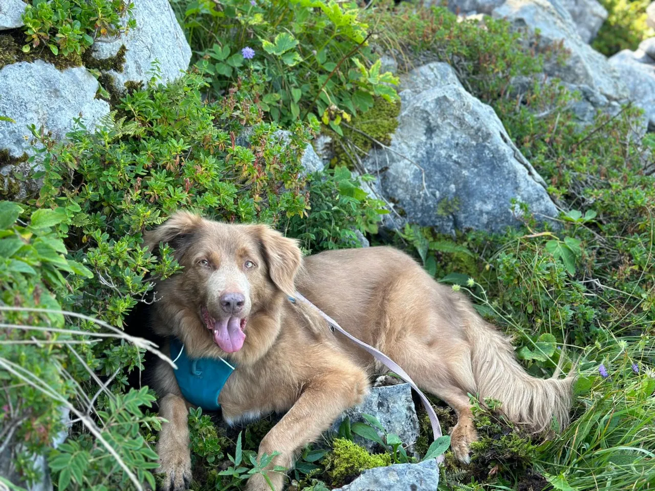 Ich laufe gern und gut an der Leine. Frei laufen kann ich auch und ich höre auf meinen Namen oder Hundepfeifen.