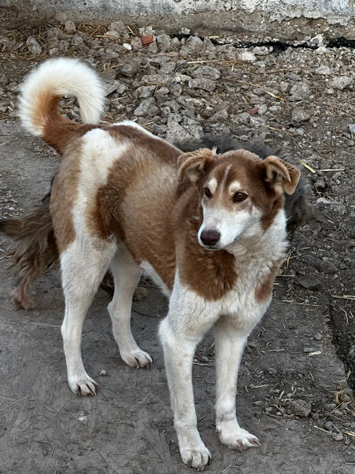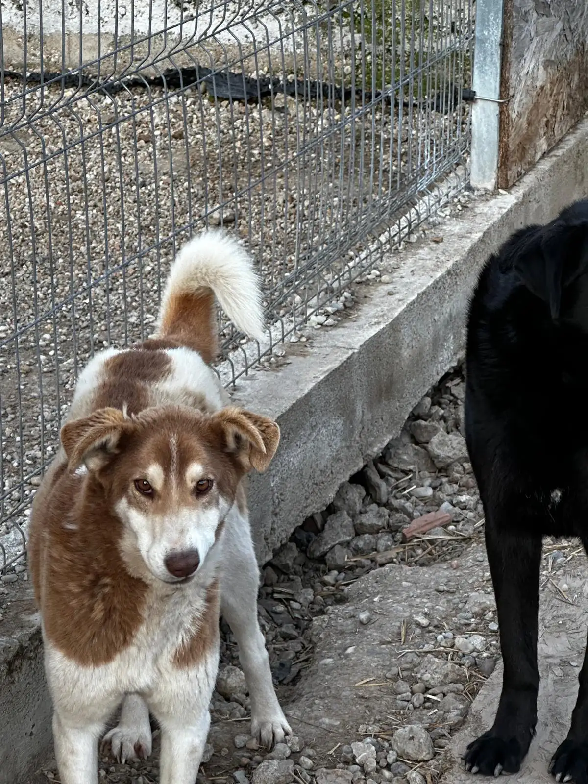 Oli ist eine brave Hündin, wir haben sie zunächst in einem der Gärten untergebracht, aber aufgrund ihrer zarten, sanften Art bekam sie nichts zu fressen, sie verlor an Gewicht und wir waren gezwungen, sie in einen Zwinger zu verlegen, damit sie fressen und am Leben bleiben konnte.